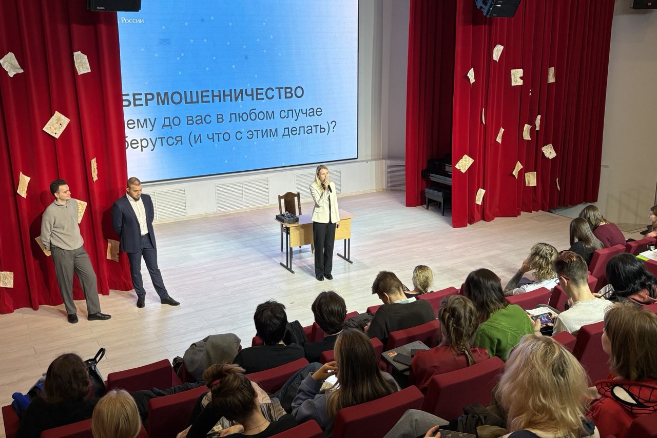 Эксперты Банка России поделились со студентами важными знаниями: начальник отдела мониторинга информационной безопасности Алексей Потехин — о том, как распознавать и избегать кибермошенничества; ведущий эксперт отдела противодействия нелегальной деятельности Антон Матросов — о финансовых пирамидах, их признаках и рисках; начальник отдела финансовой грамотности Ольга Милова — о базовых принципах разумного обращения с деньгами.