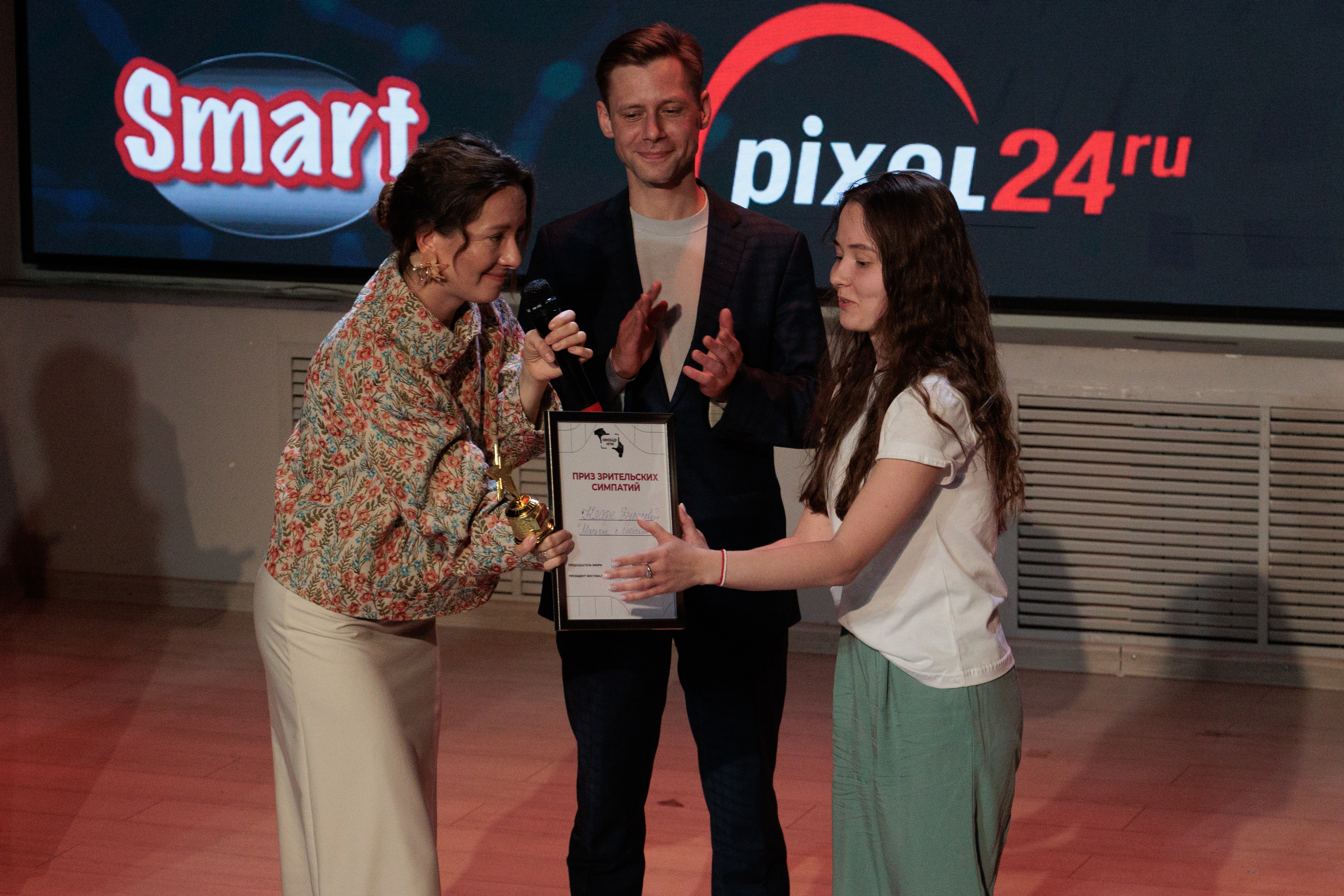 В торжественной обстановке дипломы победителям, небольшие статуэтки и подарки от партнёров вручили члены жюри, председатель оргкомитета фестиваля, педагог кафедры Анжела Якубовская, а также президент и основатель фестиваля, режиссёр, сценарист, лауреат премии ТЭФИ, заведующая кафедрой киноискусства Каринэ Фолиянц.